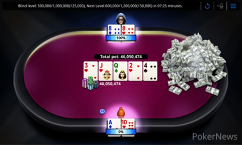 Kuznetsov called off with the 8♥8♦. The board ran out 3♥J♥Q♣2♥4♠ and Kuznetsov’s snowmen held to double big.